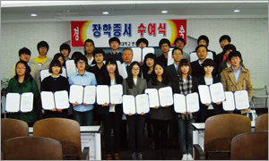 김천대학교 안경광학과(학과장 김진숙)의 ‘2011년 2학기 장학증서 수여식’이 지난달 25일 본관 5층 세미나실에서 학과 교수 및 동문이 참석한 가운데 열렸다. 이날 수여식에서는 본교 성적 장학금, 다비치안경체인 및 동문 장학금 등이 전달되었다.