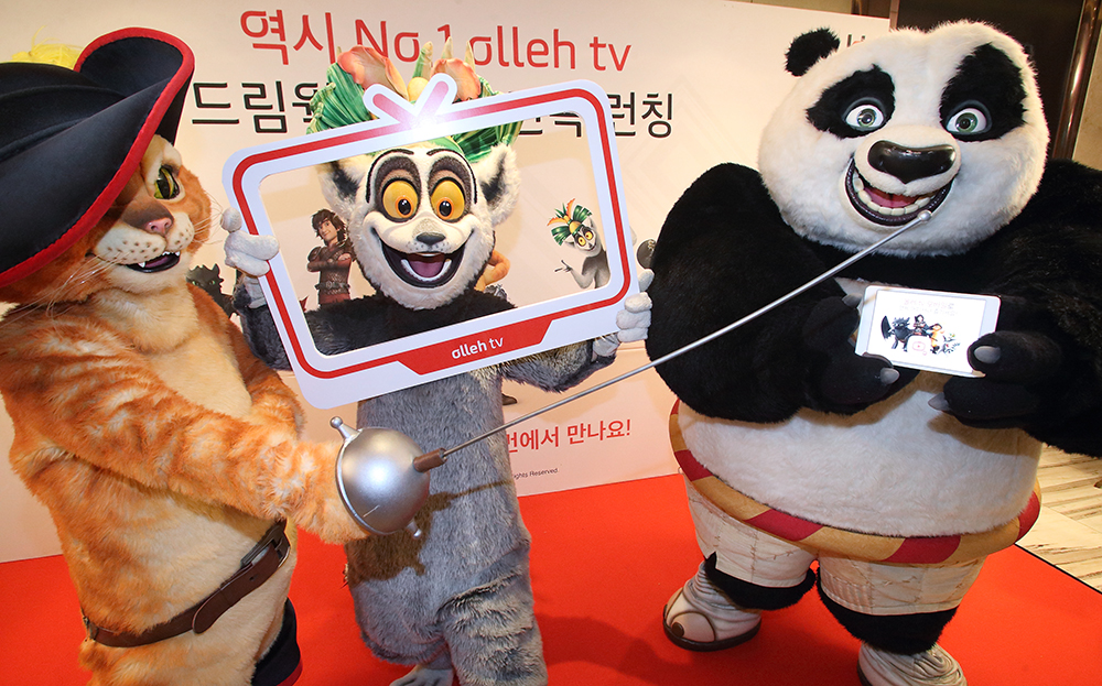 KT가 드림웍스 애니메이션과 20일 서울 중구 그랜드앰버서더호텔에서 ‘올레tv 드림웍스 채널 출시 기자간담회’를 개최했다. 이날 행사에서 KT는 IPTV 서비스인 올레tv와 모바일TV 서비스인 올레tv모바일에서 실시간 ‘드림웍스 채널’을 5월 3일부터 단독 제공한다고 밝혔다.