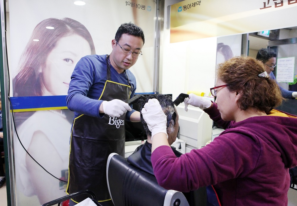 [애플경제] 동아제약은 지난 7일 동대문노인종합복지관에서 관내 어르신을 대상으로 염색 봉사활동인 '비긴어게인 캠페인'을 진행했다고 8일 밝혔다.