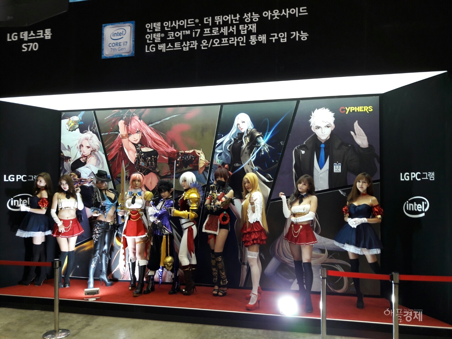 우선 LG전자의 경우 콜라보레이션 이벤트로 ‘던전 앤 파이터’와 ‘사이퍼즈’를 플레이 할 수 있는 환경을 구축하고, 부스 한쪽에 코스프레 공간을 마련했다.