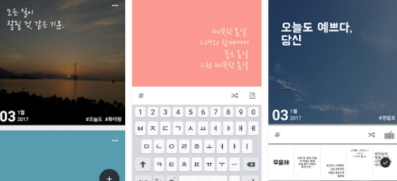 앱 사용법은 대단히 쉽다. 우선 텍스트를 적고, 감성을 따라 어울리는 타이포 필터(20종)와 색상 필터(32종)를 고르는 것으로 끝난다. 이 과정이 단 두 번의 탭으로 끝난다는 게 인상적이다.