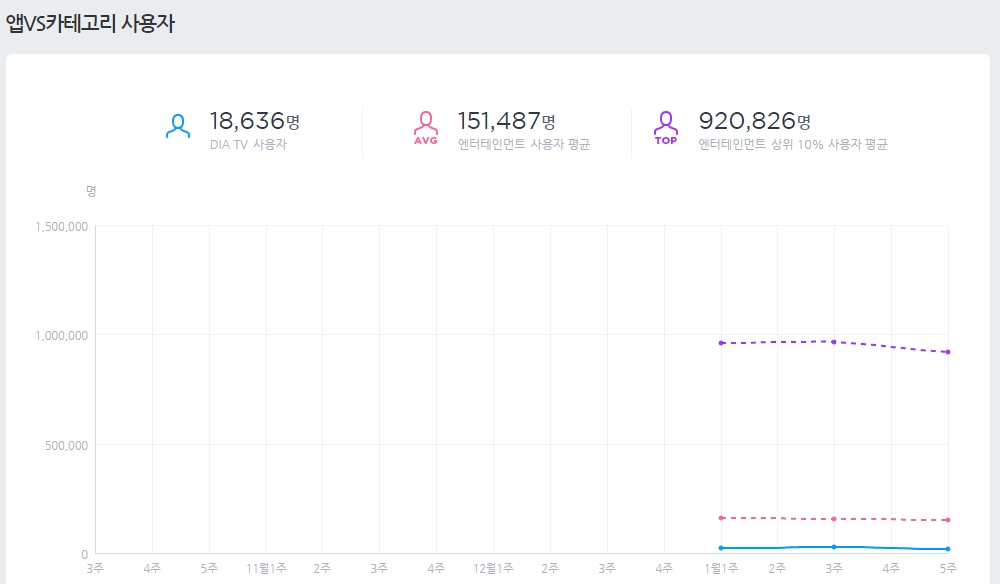 이 앱 설치자 수는 와이즈앱 기준으로 출시 직후 2만 3천여명에서 시작해 5만 8,114명이며, 사용자 평균은 엔터테인먼트 앱 사용자 평균 15만에 한참 못 미치는 1만 8천여명이다.