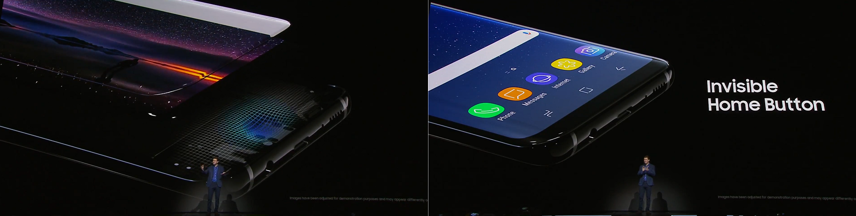 전면부 버튼은 '인비지블 홈 버튼'이름 하에 변화가 이뤄져 스크린으로 옮겨가, S8의 군더더기 없는 매끈한 디자인을 완성시켰다.
