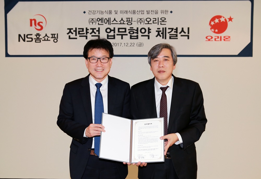 [애플경제=이해리 기자] 오리온은 식품 전문 유통 채널인 NS쇼핑과 지난 22일 경기도 성남 NS홈쇼핑 본사에서 건강기능식품(이하 건기식) 판매에 대한 전략적 업무 협약(MOU)을 체결했다고 26일 밝혔다.