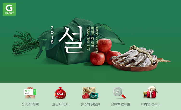 기획전에 대한 보다 자세한 내용은 G마켓 메인 페이지 상단에 위치한 ‘설 2018’ 행사 이미지를 클릭하면 바로 확인 가능하다.
