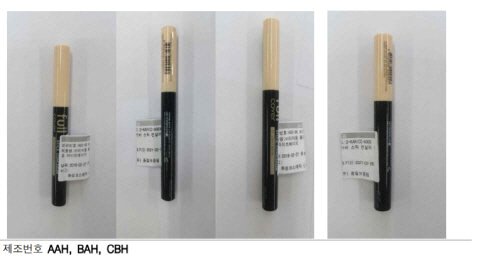 회수 대상 제품들 중 아모레퍼시픽의 제품은 ▲아리따움 풀 커버 스틱 컨실러 1호 라이트베이지 ▲아리따움 풀 커버 스틱 컨실러 2호 내추럴 베이지 ▲아리따움 풀 커버 크림 컨실러 1호 ▲아리따움 풀 커버 크림 컨실러 2호 ▲에뛰드하우스 AC 클린업 마일드 컨실러 ▲에뛰드하우스 드로잉 아이브라우 듀오3호 그레이브라운 등 6종이다.