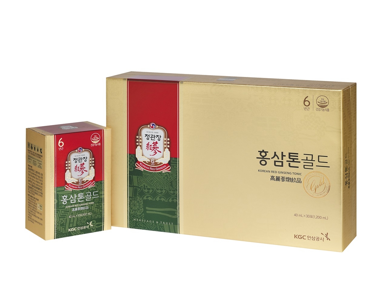 '홍삼톤골드'는 6년근 홍삼농축액을 주원료로 황기·천궁·당귀 등의 부원료를 과학적으로 배합하여 만든 KGC인삼공사의 대표 제품이다. 면역력 증진·피로·체력개선 등의 효과가 있으며 섭취가 간편한 파우치 형태다.