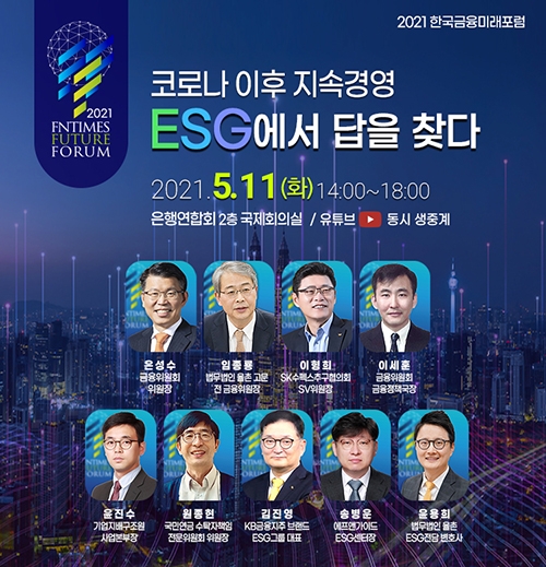 한국금융신문이 오는 5월 11일 서울 중구에 위치한 은행연합회 국제회의실에서 여는 ‘2021 한국금융미래포럼’에서는 그동안 막연했던 ESG 실체를 조명해보고 구체적인 ESG 활동과 대응 방안을 짚어본다.