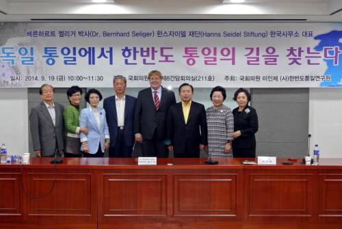 (사)한반도통일연구원(허증 이사장, 김경웅 원장)은 독일 한스자이델 재단(Hanns Seidel Stiftung)의 한국사무소 대표 베른하르트 젤리거 박사(Dr. Bernhard Seliger)를 초청, 『독일 통일에서 한반도 통일의 길을 찾는다』라는 주제로 지난 19일 국회의원회관 제8간담회의실(신관 211호)에서 강연회를 개최했다.
