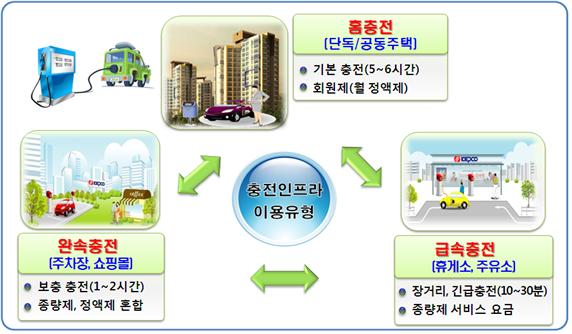 이에 따라, 민관 합동으로 시장시스템을 적용해 민간기업이 주유소와 같이 충전소를 구축하고 24시간 유료충전 서비스를 제공함으로써 충전인프라 부족문제를 해소하기로 했다.