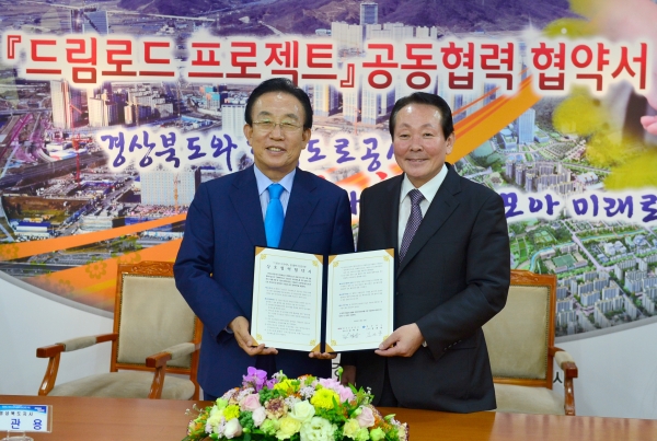 경북도는 15일 도청 회의실에서 김관용도지사, 김학송 한국도로공사 사장 등 양기관의 임직원이 참석한 가운데 경북혁신도시 드림로드 프로젝트 공동협력 추진을 위한 상호협력 협약을 체결했다.