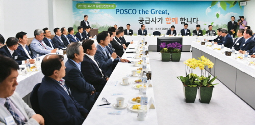 권오준 회장은 3일 삼우에코(대표 허기복)에서 진행된 2015년 포스코 동반성장협의회에 참석해 그동안의 동반성장 활동 성과를 공유하고, 포스코와 공급사 모두에게 도움이 되는 동반성장 활동 방안을 모색했다.