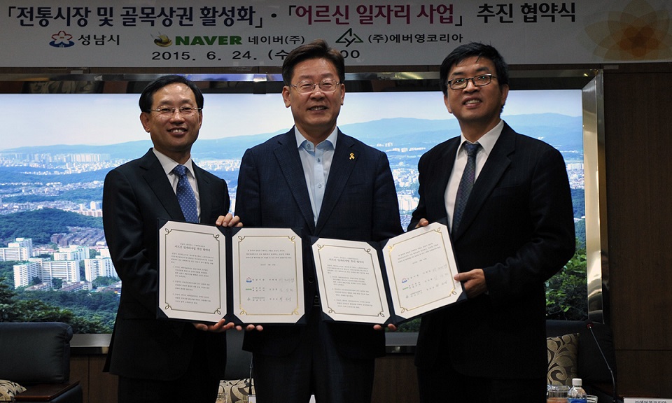 또한, 네이버는 성남시, 에버영코리아(대표 정은성)와 함께 성남시에 거주하는 어르신들을 대상으로 일자리 사업을 추진하는 내용의 협약을 체결했다. 향후 양사와 성남시는 젊은 세대가 주도하는 정보 통신 분야에서 시니어 고용 창출을 위해 노력할 계획이다. 에버영코리아는 지난 2013년부터 네이버로부터 업무 위탁을 받아 다양한 지역에서 시니어 채용을 확대하고 있으며, 현재 성남 야탑 사업장에서 근무할 시니어 직원을 채용 중에 있다.