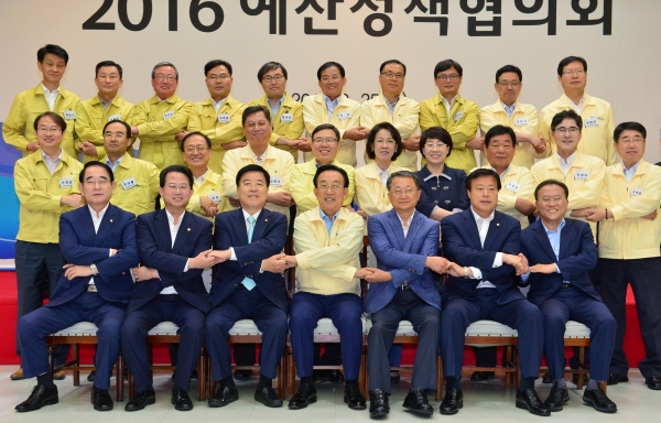 경북도는 대구시와 공동으로 25일 도청 강당에서 새누리당 정책위원회와 예산정책 협의회를 가졌다.
