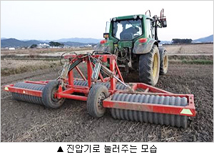 특히, IRG는 뿌리가 땅 속 깊이 내려가지 않고 흙 표면에 넓게 퍼져서 자라기 때문에 반드시 눌러줘야 한다. 트랙터에 롤러를 붙여 눌러주는 것이 가장 좋은데, 이때 트랙터를 너무 빠르게 운행하지 않도록 한다.