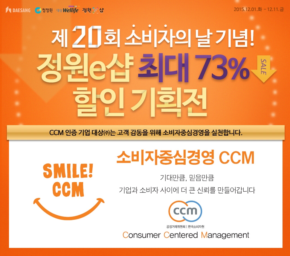 대상 정원e샵 담당자는 “대상은 CCM(소비자중심경영) 인증 기업으로서, 소비자의 날과 소비자중심경영 인증 제도에 대해 알리기 위해 이번 기획전을 마련했다”며 “앞으로도 고객 감동을 위해 더욱 노력해 나갈 것” 이라고 설명했다.