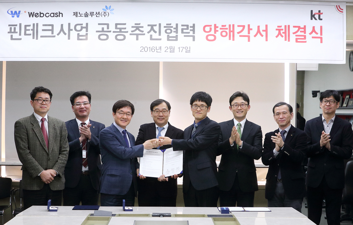 이번 협약에 따라 국내 최고 수준의 ICT 인프라를 보유한 KT는 핀테크 등 금융 솔루션 분야의 선두사업자인 웹케시, 최신 ICT기술과 금융서비스 융합에 전문성을 가진 제노솔루션과 손잡고 핀테크 솔루션 개발과 공동 마케팅을 통해 관련 분야 사업 활성화를 추진하게 된다.