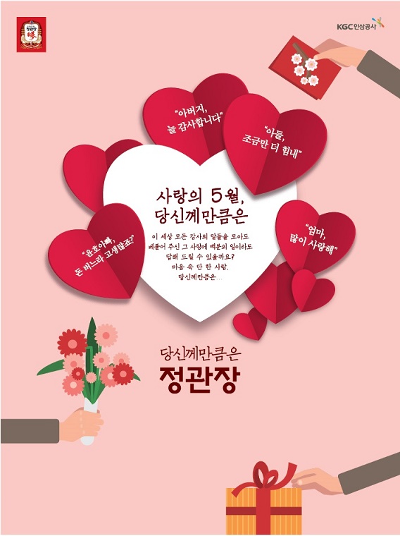 [애플경제] KGC인삼공사가 5월 가정의 달을 맞아 소중한 이들에게 ‘칭찬․격려․사랑’을 전달할 수 있는 “사랑을 표현하세요! 사랑이 보입니다” 이벤트를 5월 21일까지 진행한다고 밝혔다.