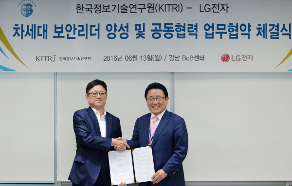 LG전자 소프트웨어센터장 민경오 수석연구위원(부사장)은 “제품에 대한 고객의 신뢰를 얻기 위해 보안 분야 전문 인력 확보는 필수”라며 “한국정보기술연구원과의 협력을 통해 차세대 보안 전문가 양성에 적극 나설 것”이라고 강조했다.