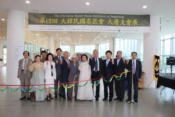경북도 신도청 동락관에서 27일 장상길 일자리민생본부장, 대한민국명장 대구경북지회 임호순 회장 등 19명과 내․외빈 50여명이 참석한 가운데 “제13회 대한민국명장 대경지회 작품전시회” 개막식이 있었다. 전시 기간은 27일부터 다음달 3일까지 7일간 개최된다.