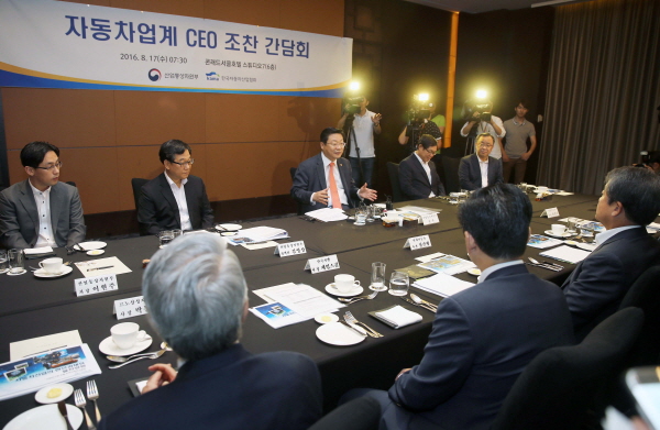 주 장관은 이날 여의도 콘래드 호텔에서 열린 자동차업계 CEO 간담회에서 “구글·애플 등 새로운 플레이어의 등장, 전기차 시장을 주도하는 중국의 급부상 등 글로벌 자동차산업의 패러다임이 근본적으로 변화하고 있다”면서 “업계도 우리 자동차산업의 미래 경쟁력 확보와 일자리 창출을 위해 노력해달라”고 밝혔다.