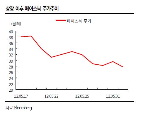 페이스북은 높은 성장성과 높은 이익률에 기반해 상장 당시 예상보다 높은 프리미엄을 적용, 공모가 최상단인 38달러로 출발했다.