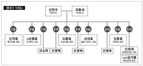 신격호 회장은 한국롯데를 설립하면서 4명의 남동생들에게도 경영권을 나눠줬다. 차남 신철호 전 롯데 사장, 3남 신춘호 농심 회장, 4남 신선호 일본 산사스 회장, 5남 신준호 푸르밀 회장에게 똑같이 경영권을 배분했다.