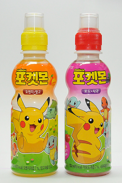 오렌지과즙 7%와 망고과즙 3%에 비타민C, 식이섬유가 들어있는 '포켓몬 오렌지·망고'와 포도과즙 7%와 사과과즙 3%에 칼슘, 식이섬유를 함유한 '포켓몬 포도·사과' 2종으로 235ml 용량의 페트 제품이다.