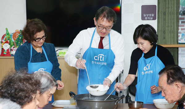 [애플경제] 한국씨티은행은 새해 첫 날을 맞아 어르신들에게 떡국을 배식하는 봉사활동을 펼쳤다.
