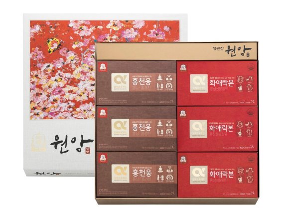원앙세트는 6년근 홍삼농축액에 전통원료를 부원료로 함유해 남성 건강을 위해 만든 '홍천웅'과 여성 건강을 위해 만든 '화애락본'으로 구성된 세트다.