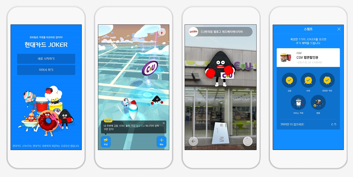 현대카드는 작년 한 해 선풍적인 인기를 끌었던 증강현실 게임 ‘포켓몬GO’를 패러디한 프로모션 게임 앱 ‘조커’를 지난 10일 출시했다. ‘조커’는 출시 일주일 만에 다운로드 수 약 7만 건을 기록했고 지속적으로 이용자 수를 늘려가고 있다.