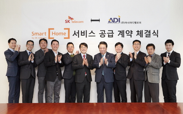 [애플경제] SK텔레콤(사장 박정호)은 전문 부동산 기획/개발 기업인 아시아디벨로퍼(회장 정바울)와 17일 오후 을지로 사옥에서 아파트에 음성인식 기기와 인공지능, 스마트홈 기능을 결합하는 신개념 ‘음성인식 스마트홈 아파트’를 최초로 선보이기 위한 계약을 체결했다고 밝혔다.