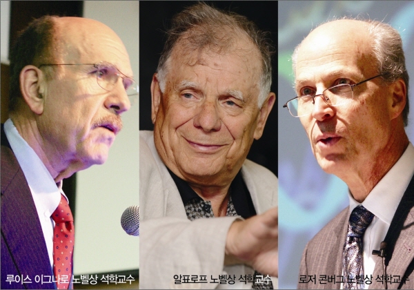 건국대학교는 2일 “노벨상 수상자인 루이스 이그나로 교수(1998년 노벨생리의학상 수상)와 저 콘버그 교수(2006 노벨화학상 수상), 조레스 알페로프 박사(2000년 노벨물리학상 수상)등 노벨상 수상자 3명이 잇따라 한국을 방문, 연구 포럼 참석과 컨퍼런스 발표, 연구협의 등 다양한 활동을 벌인다”고 밝혔다.