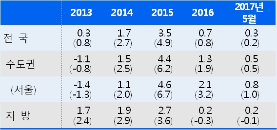 올해 1~5월 중 전국 주택매매가격은 전년말월대비 0.3% 상승했는데 수도권의 상승률(0.5%)이 지방(0.2%)을 큰 폭 상회했다는 것이다.