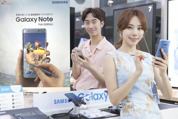 [애플경제] SK텔레콤(사장 박정호)이 갤럭시 노트7의 디자인과 기능은 유지하면서 지능형 인터페이스 '빅스비 홈', '빅스비 리마인더'를 적용한 '갤럭시 노트 FE(Fan Edition)'를 SK텔레콤 공식인증대리점과 온라인몰 T월드다이렉트에서 7일부터 판매한다고 밝혔다.