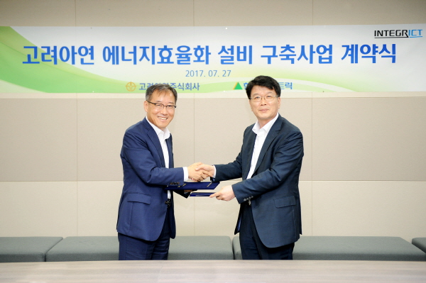 현대일렉트릭은 27일 경기도 분당사무소에서 500억원 규모의 ‘에너지효율화 설비구축 사업 공동추진’에 대한 계약식을 가졌다. 이날 계약식에는 주영걸 현대일렉트릭 사장, 이제중 고려아연 사장 등이 참석했다.