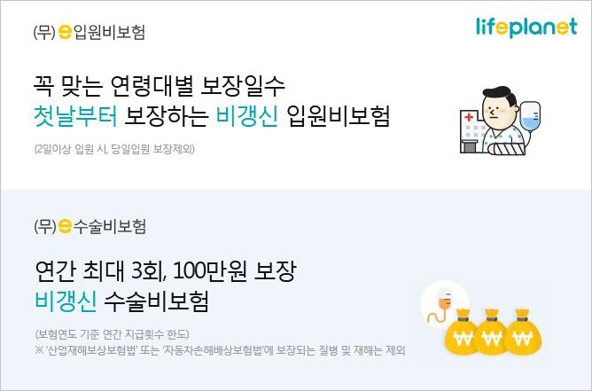 일반적으로 소비자들의 니즈가 큰 입원비와 수술비 보장은 주계약에 갱신형 특약형태로 부가되는 경우가 많아 갱신 시마다 보험료 인상에 대한 부담이 컸으나 이번에 출시된 라이프플래닛의 입원비ㆍ수술비보험 2종은 80세 만기 비갱신형으로 보험료 변동이 없어 큰 부담 없이 장기적인 위험에 대비할 수 있다.