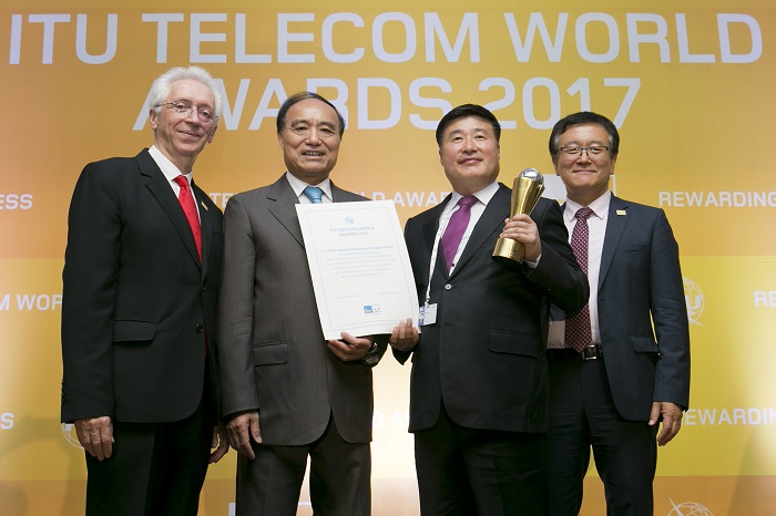 [애플경제=김예지 기자] KT가 지난 28일(목) 오후 부산 해운대 벡스코에서 열린 ‘ITU 텔레콤 월드 어워즈 2017(ITU Telecom World Awards 2017)’에서 정보통신 기반 가장 우수한 기업에게 수여하는 글로벌 코퍼레이트 어워즈(Global Corporate Awards) 부문 ‘스마트 기술 혁신상(Smart Emerging Technologies)’을 수상했다고 밝혔다.