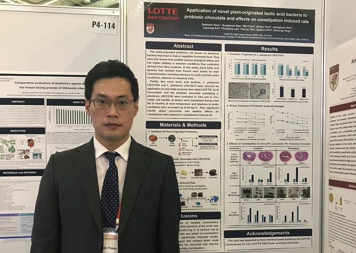[애플경제=이윤순 기자] 롯데중앙연구소가 지난 24일, 전북 군산 새만금 컨벤션 센터에서 열린 ‘2017년 국제건강기능식품 학술대회(ISNFF, International Conference and Exhibition on Nutraceuticals & Functional Foods)’에서 유산균 초콜릿의 변비 개선과 예방 효과에 대한 연구 결과를 발표했다.