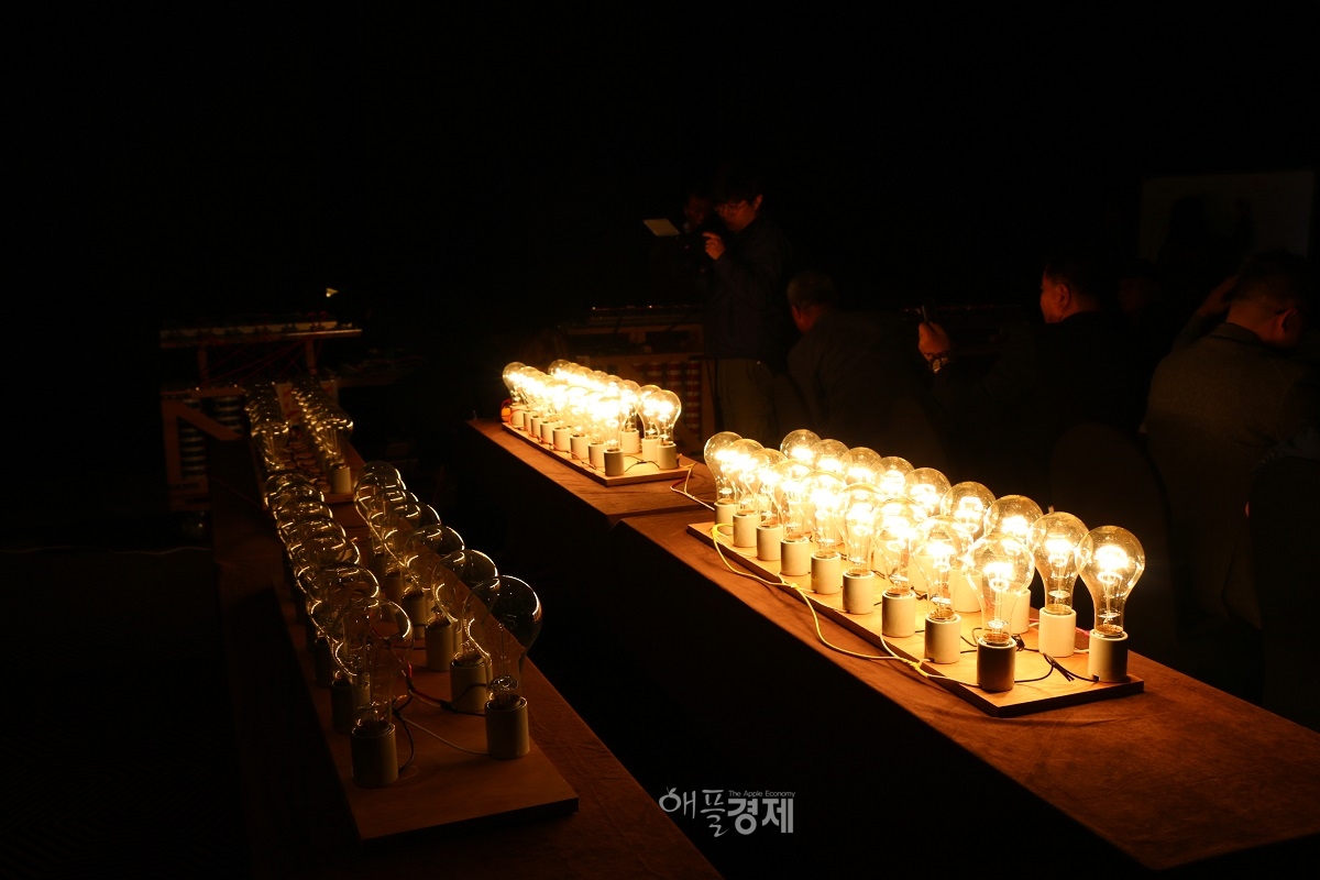 기술발표 이후 이어진 시연회에서는 구동전력 447W를 전자발전기에 투입한 결과 25배에 달하는 11,515W의 전력을 생산해 18개에 달하는 300W 백열전등을 모두 밝혔다.