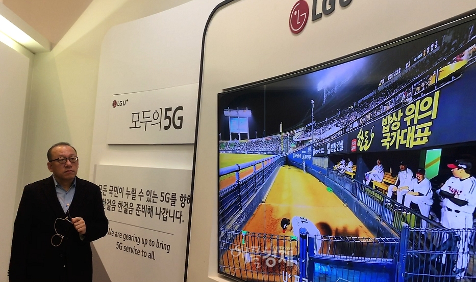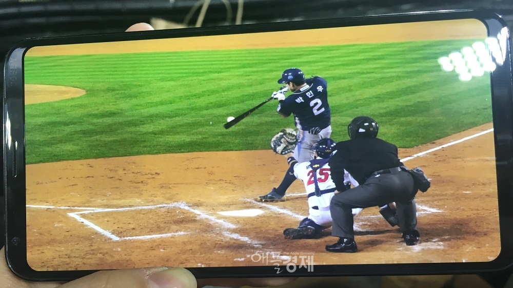 LG유플러스가 지난 10월17일 서울 잠실 야구장에서 별도의 부스를 마련해 시연한 '5G 프로야구 생중계 서비스'도 선보였다. 이 서비스는 프로야구 경기를 기존 프로야구 앱 서비스보다 6배 이상 선명한 고화질 영상으로 즐길 수 있다.