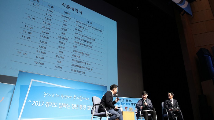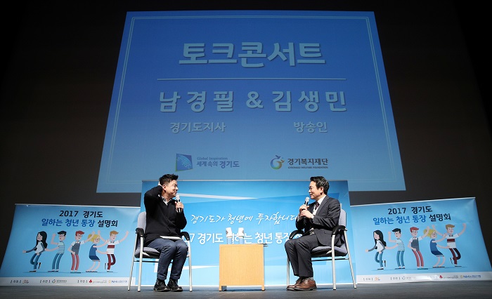 남 지사는 통장요정 김생민 씨와 ‘청년이 함께한 청년통장 토크콘서트’를 진행하며 이 시대를 살아가는 청년들의 고민을 함께 이야기하고, 그들의 꿈을 응원하는 뜻깊은 시간을 가졌다. 김생민 씨는 팟캐스트 ‘김생민의 영수증’에서 청년통장 정책을 극찬한 바 있다.