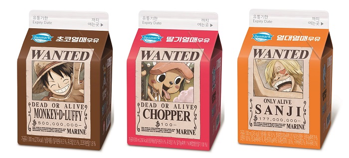 ‘덴마크 열매우유’ 3종은 만화 ‘원피스’의 등장인물인 ‘루피’, ‘상디’, ‘쵸파’의 얼굴이 각각 우유팩에 재미있게 그려져 있다. ‘원피스’는 1997년 이후 20여 년 넘게 연재되고 있는 일본의 장수 만화로, 올해 누계 발행부수가 4억 부를 돌파할 정도로 전세계적으로 인기를 끌고 있다.