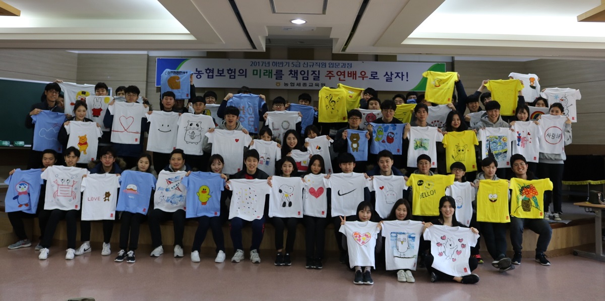 [애플경제=유현숙 기자] NH농협생명보험과 NH농협손해보험이 29일 농협보험교육원에서 기후난민 어린이를 위한 손싸개와 티셔츠를 제작했다.