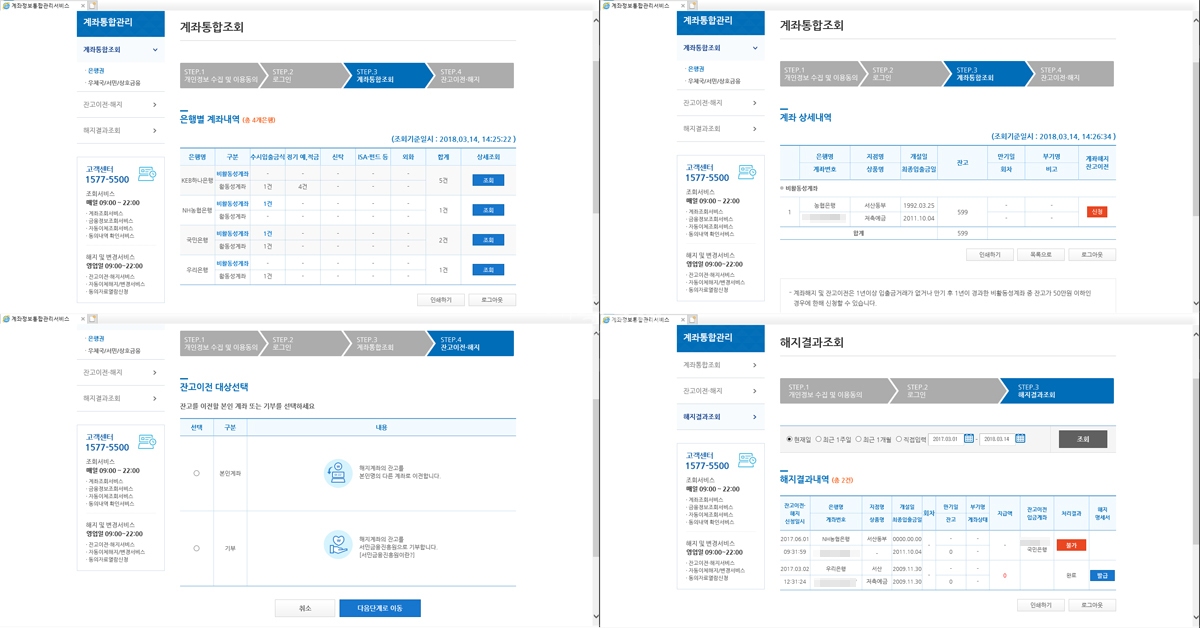 휴면계좌와 휴면예금을 확인하려면 개인정보 수집 및 이용동의 절차를 거쳐야 한다. 서비스 이용과 정보를 제공하는 데에 대해 동의하고 공인인증서 및 본인확인 휴대폰인증 등의 로그인을 마치면 계좌통합조회가 가능하다.