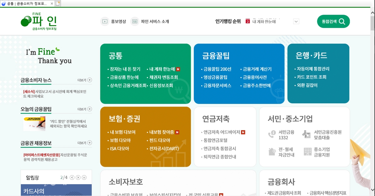 금융당국은 지난 2016년 9월 산발적으로 운영되고 있던 여러 금융 조회 시스템을 하나의 포털사이트를 통해 확인할 수 있도록 금융소비자 정보포털 파인(FINE)을 개설했다.