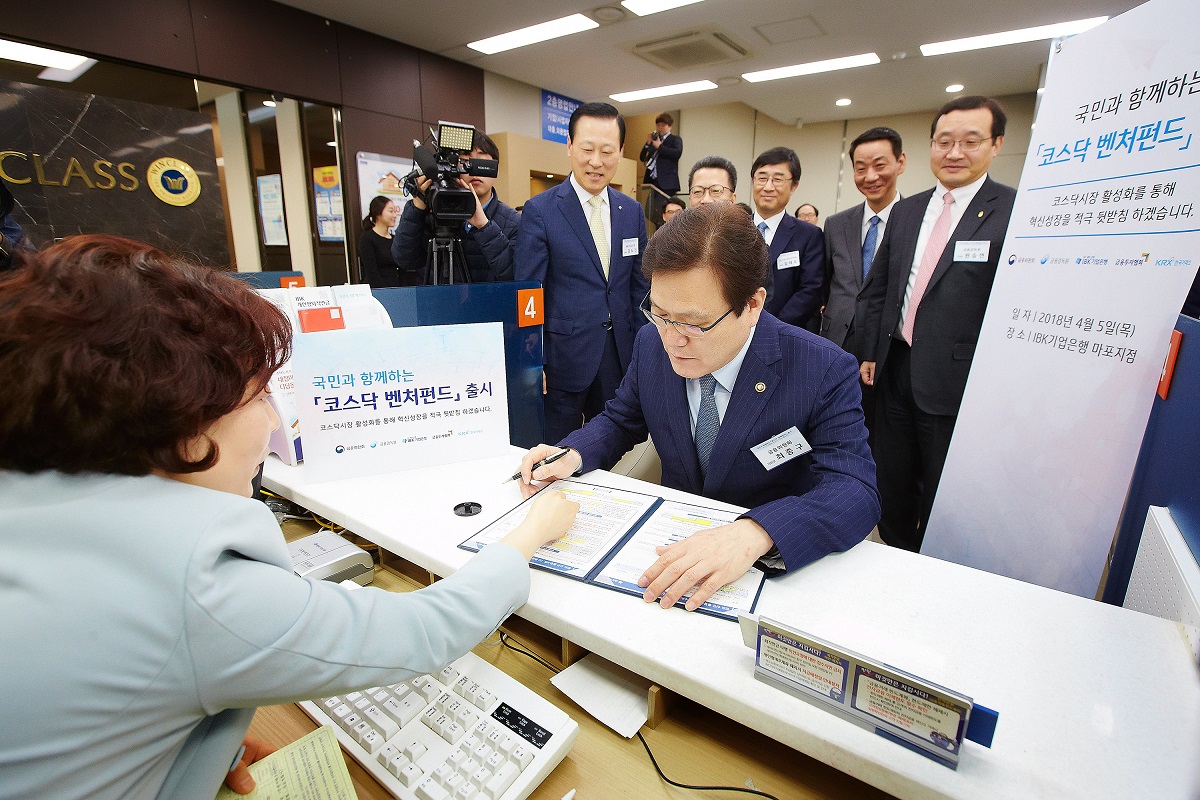 최종구 금융위원장은 5일 IBK기업은행 마포지점에서 ‘코스닥벤처펀드’에 가입했다.