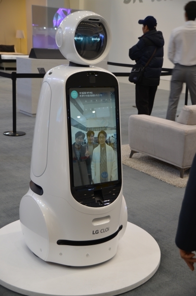 LG전자는 자사의 AI 로봇 브랜드 ‘클로이’와 ‘투명 올레드 사이니지’를 선보였다.