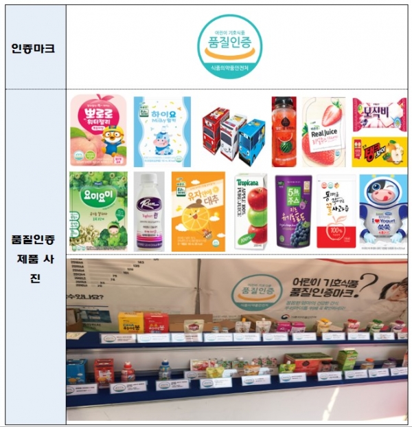 한편, 품질인증 신청은 식품안전나라(www.foodsafetykorea.go.kr)→우리회사안전관리서비스→어린이 기호식품 품질인증에서 신청할 수 있으며, 구비서류는 HACCP인증서 사본(국내제조식품에 한함), 우수수입업소 또는 해외우수제조업소 등록증 사본(수입식품에 한함), 검사성적서(영양성분, 식품첨가물), 품목제조보고서 사본 등이다.