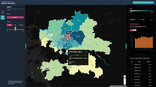인구 이동 정보를 주말과 주중, 월별로 지도상에서 3차원적으로 확인할 수 있는 빅데이터 기반의 지도 서비스가 개발됐다.